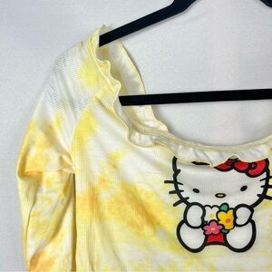 SHEIN X Hello Kitty Yellow Tie Dye Ruffle Cropped Long Sleeve Top 0X