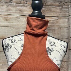 SHEIN X PRIVY2 Ways Ribbed Knit Cop Top Brown, Sexy, Crop, Halter, High Stretch, Top