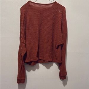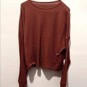 Cozy rust-colored waffle knit top with long sleeves. Perfect for layering.