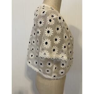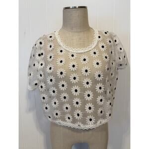 SHEIN XL White Sheer Daisy Lace Embroidered Mesh Crop Top Blouse Floral Festival