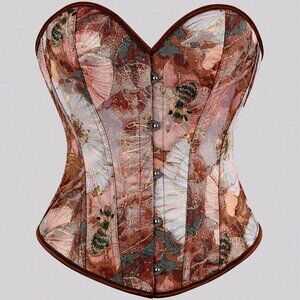 Y2K-inspired boned corset top from SHEIN featuring a bold bee jacquard pattern and structured bandeau silhouette. This stretchy, curve-hugging corset channels early-2000s clubwear with a vintage palace aesthetic twist. Designed to shape and flatter with built-in boning, making it a standout piece for Y2K outfits, nightlife looks, festivals, or statement styling. Plus size corset tops are in high demand and harder to find, making this a sought-after piece.