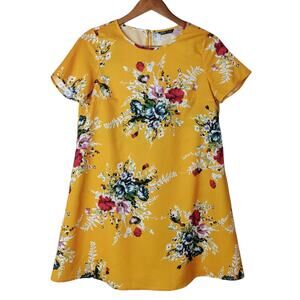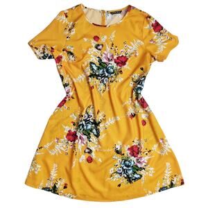 * Bright marigold / mustard yellow with blue, green, pink, and white flowers