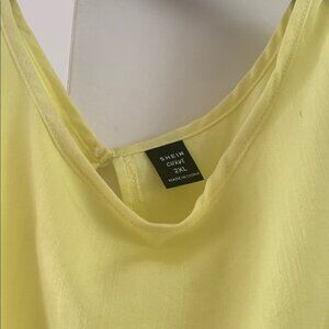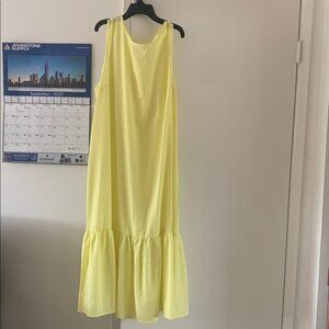 Bright yellow maxi dress. Sleeveless design. Ruffled hem.