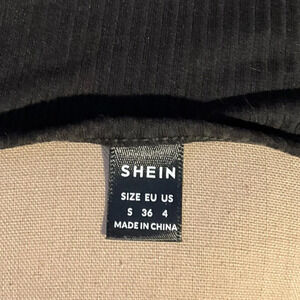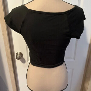 SHEIN black crop top sz small. Square neckline. 62% polyester and 33% viscose and 5% elastane.