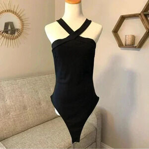 SHEIN black cross neck bodysuit