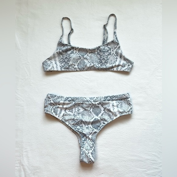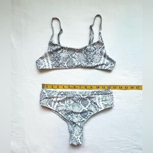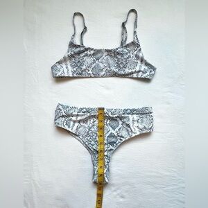 SHEIN blue and white snake print two piece swimsuit size S. It does not have the pads in the top piece. The measurements are in the pictures.