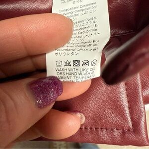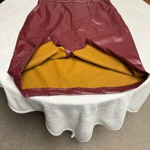 This chic burgundy pencil skirt is perfect for a night out, featuring a knee-length design that offers a sleek and sophisticated look. Its fitted silhouette and smooth finish make it a standout piece for any cocktail occasion. The skirt's modern style ensures a flattering fit, ideal for making a stylish statement. Deep front pockets, cute notch at the waist and modest front slit. No belt but has loops.