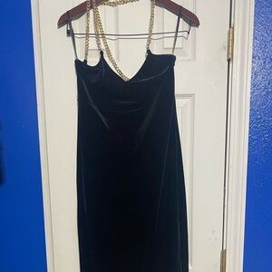 SHEIN club cocktail bodycon chain sleeve velvet dress with cut out in back size L