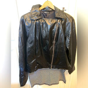 SHEIN faux leather black bomber jacket & Old Navy black striped skirt XL