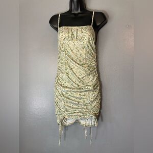 SHEIN green Drawstring Spaghetti Strap Mini Dress