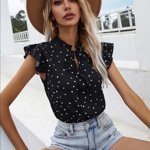 SHEIN heart patterned peekaboo blouse romper - like new