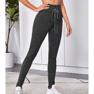🆕 SHEIN high rise drawstring waist charcoal gray leggings medium