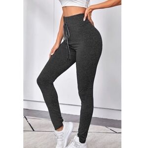 NEW SHEIN high rise drawstring dark gray leggings medium.