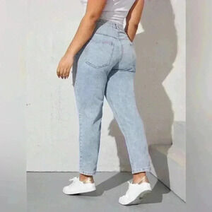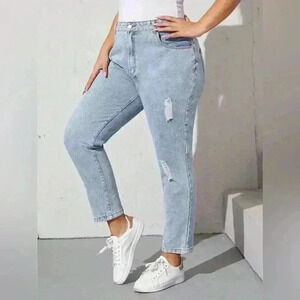 🎆 SHEIN high waisted distressed mom jean light wash XL tapered leg non-stretch