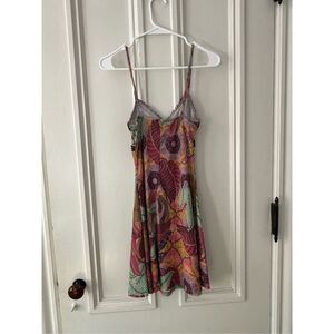 SHEIN multicolor orange pink green maroon floral slip dress with lace XS