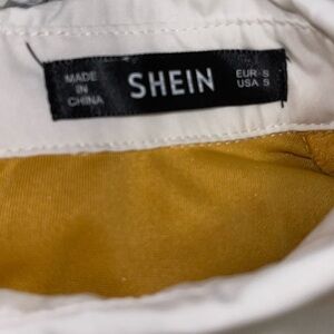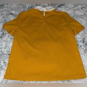 SHEIN mustard blouse with white collar and embellishment of rhinestones and pearls