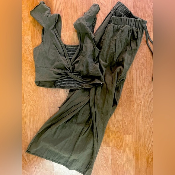 SHEIN | nwot co-ord capris/crop top size 6| army green, gauze, two piece set