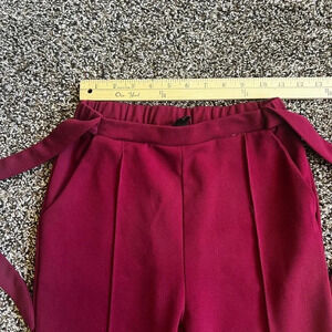 SHEIN pants, size XS. Deep burgundy color with an accent seam down the front of each leg. Elastic waist with a decorative tie in front . In good condition, no rips, tears or stains. Rayon/spandex blend.