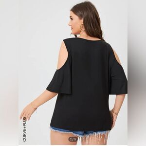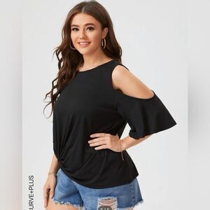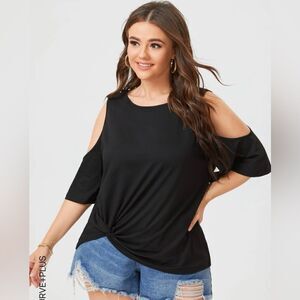 SHEIN plus Solid Twist Front Cold Shoulder Tee