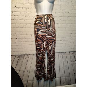 Style:. retro print, stretchy flare highrise bodycon pants with opened up sexy bare hip design