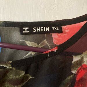Elevate your wardrobe with this exquisite SHEIN see-through floral top, size 2X. The top features a breathtaking pattern of vibrant red and white roses set against a dark backdrop that lends an air of sophistication. Made from a lightweight and breathable semi-transparent fabric, this top ensures you stay comfortable while making a stylish statement. The round neckline and loose-fitting sleeves offer a relaxed fit suitable for various occasions, from casual outings to evening events. Pair it with a solid camisole or bralette underneath to complete the look. Its versatile design means it can be dressed up or down depending on your mood. Add this must-have piece to your collection today and embrace the perfect blend of elegance and comfort!