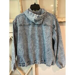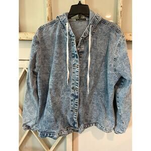 SHEIN size 2X stonewashed hooded denim jacket in excellent condition. Seems like nice quality. Measures 27” from armpit to armpit and 25” long.