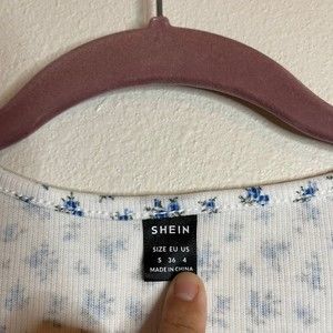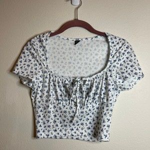 SHEIN size small white floral blue blouse crop top