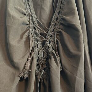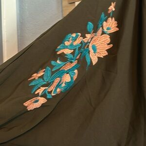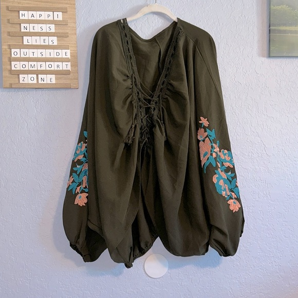 Size XL SHEIN. Dark green with floral sleeve. Tie in center. Large sleeves.