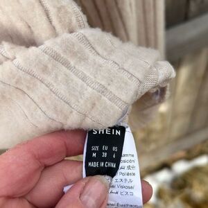 SHEIN blouse sweater soft poofy type long sleeve. So.e is medium. Gathered in sides.