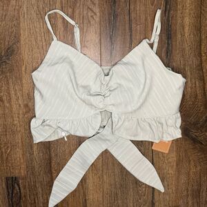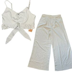 Green Striped Tie Front Ruffled Crop Top & Wide Leg Flare Pants Set- SHEIN x Frenchy