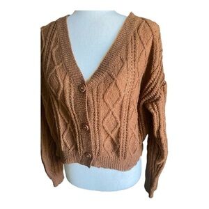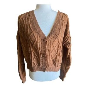 Brown cropped sweater, button front, lots of stretch, lightweight, large stitch, great condition, 100% polyester