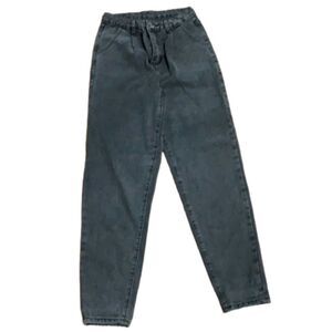 These high rise jogger jeans from SHEIN feature a comfortable elastic waistband with a drawstring for an adjustable fit. The relaxed fit through the legs tapers towards the ankles, providing a stylish yet casual look. Made from soft denim-like fabric, these jeans are perfect for everyday wear.