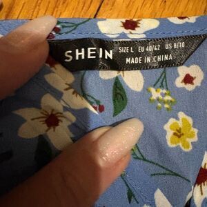 Vibrant blue romper with charming floral design. Perfect for fun and comfort.