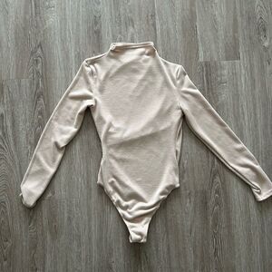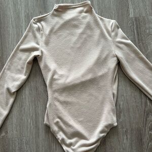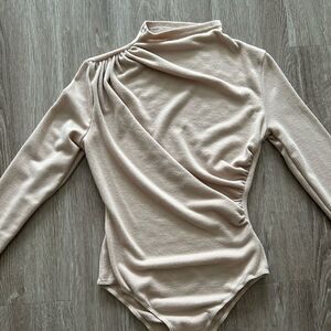 Tan gathered front mock neck bodysuit from SHEIN. Good condition, size XS