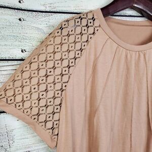 SHEIN Curve 4XL Taupe Blouse Crochet Sleeve Short Sleeve Soft Stretch Tee