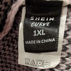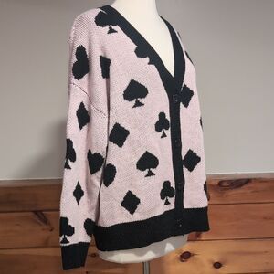 Stylish SHEIN Curve cardigan. Features black and pink card pattern. Perfect for layering.