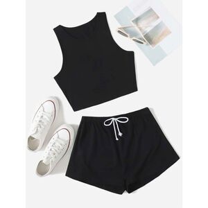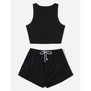 SHEIN EZwear Crop Tank Top & Knot Front Shorts 2pc set