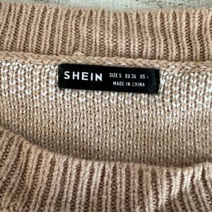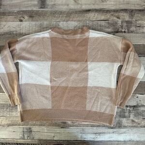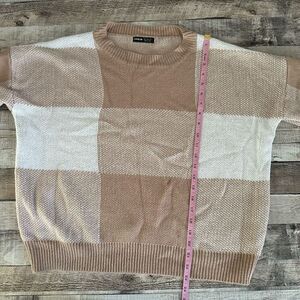 SHEIN Oversized Patchwork Plaid Tan White Pullover Sweater | S
