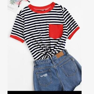 SHEIN Pocket Patched Striped Ringer Tee Med/6