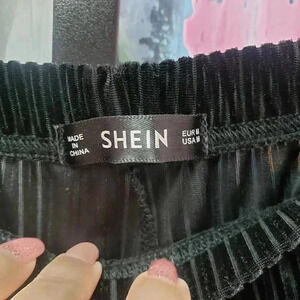 SHEIN Ribbed Black Velvet Flare Pull On Pant