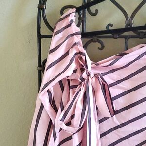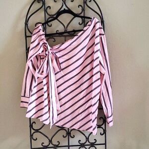 SHEIN Striped Off the Shoulder Top - Size 1XL Pink with Gray/Black Stripes Polyester/Spandex Blend MSRP $39 Pre-Loved K5