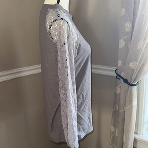 Excellent preowned condition SHEIN purple/gray lightweight sweater blouse Sheer arms Women’s small Smoke free home