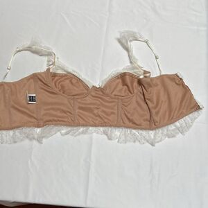 SHEIN Tan and White Corset-Style Bra with Transparent Straps