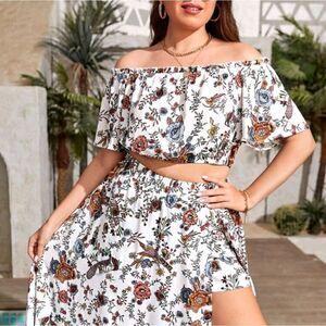 Floral Mainly white two piece set. Skirt has shorts attached!