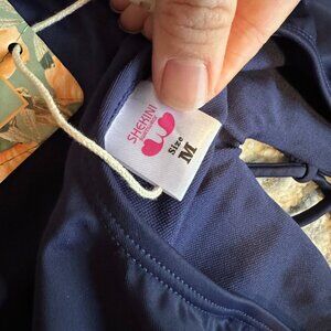 SHEKINI {NWT} Navy Blue Lace Up One Piece Swimsuit | Medium | high leg u back