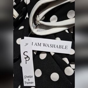 SHELBY & PALMER Elegant Black and White Polka Dot Dress