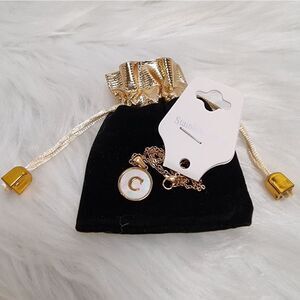 Gorgeous natural shell initial necklace set in gold plated stainless steel with lobster clasp. The natural shell pattern may vary as I have stocked several in each letter. Measures 18" long. Comes in black velvet pouch as shown. If you'd prefer a jeweler's box, it's listed in a separate listing, just add it to your bundle.