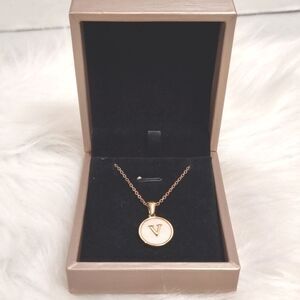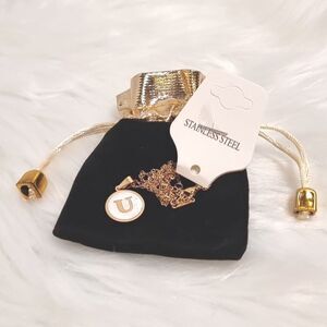 SHELL INITIAL PENDANT NECKLACE stainless steel gold plated U V or W