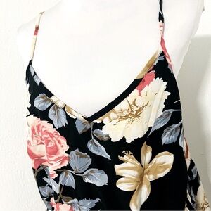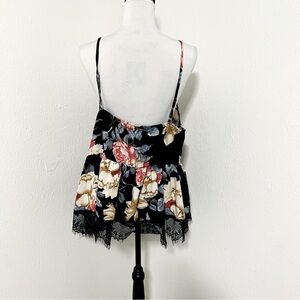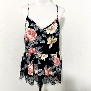 Elegant camisole top featuring a floral design with lace trim. Perfect for a chic and stylish look.