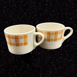 SHENANGO CHINA NEW CASTLE Mug Set Ceramic USA Yellow White 2.5”T 3.25”W Set 2